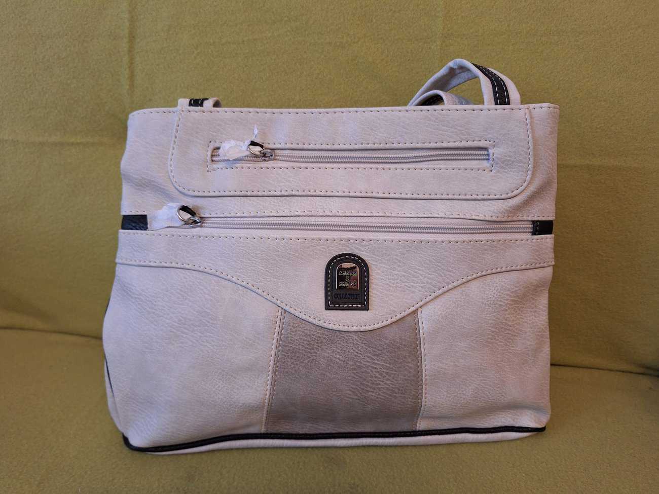 Torbica ima dva večja predala in tri manjše. Na voljo v treh barvah: modra, siva in beš.